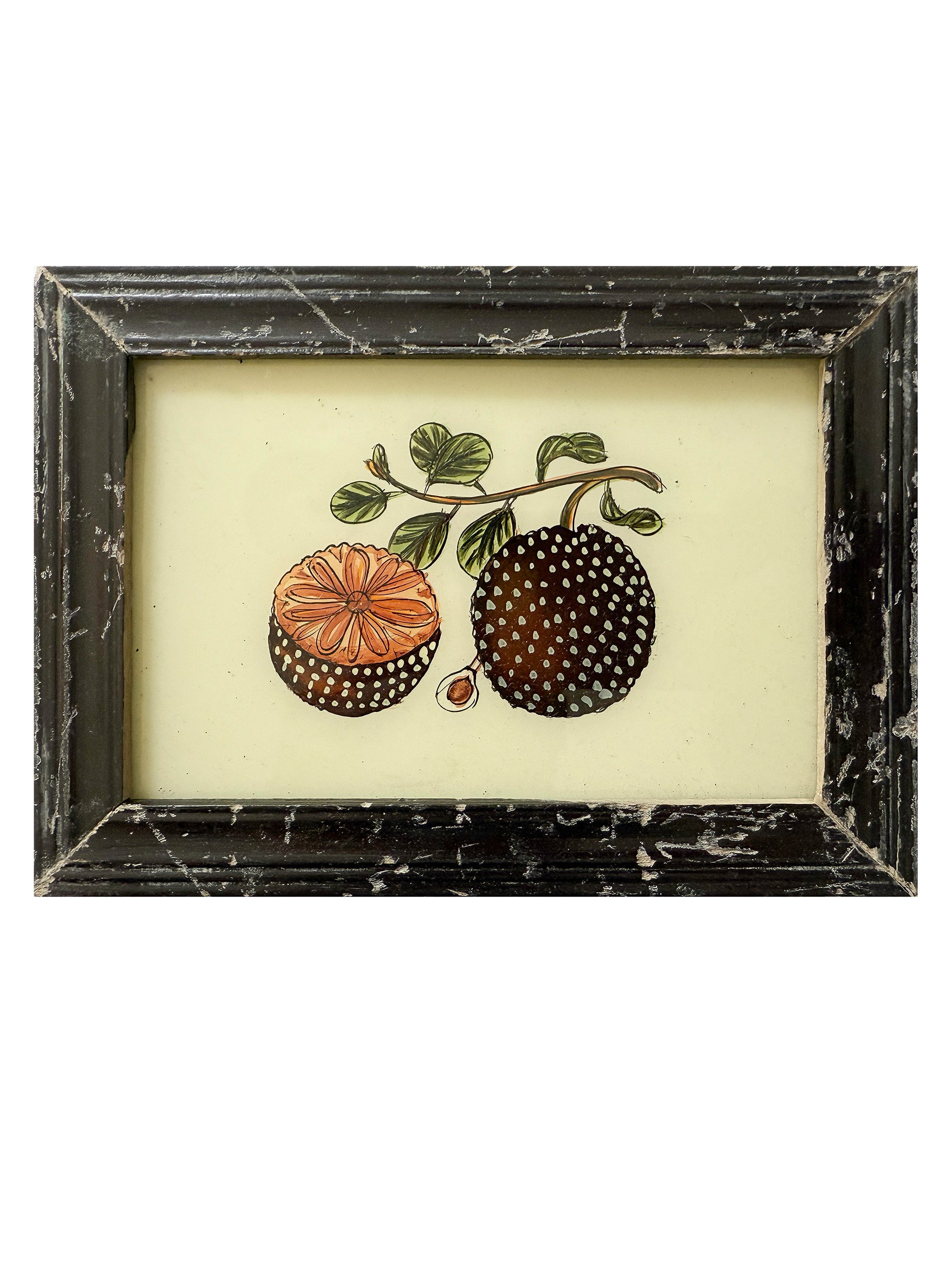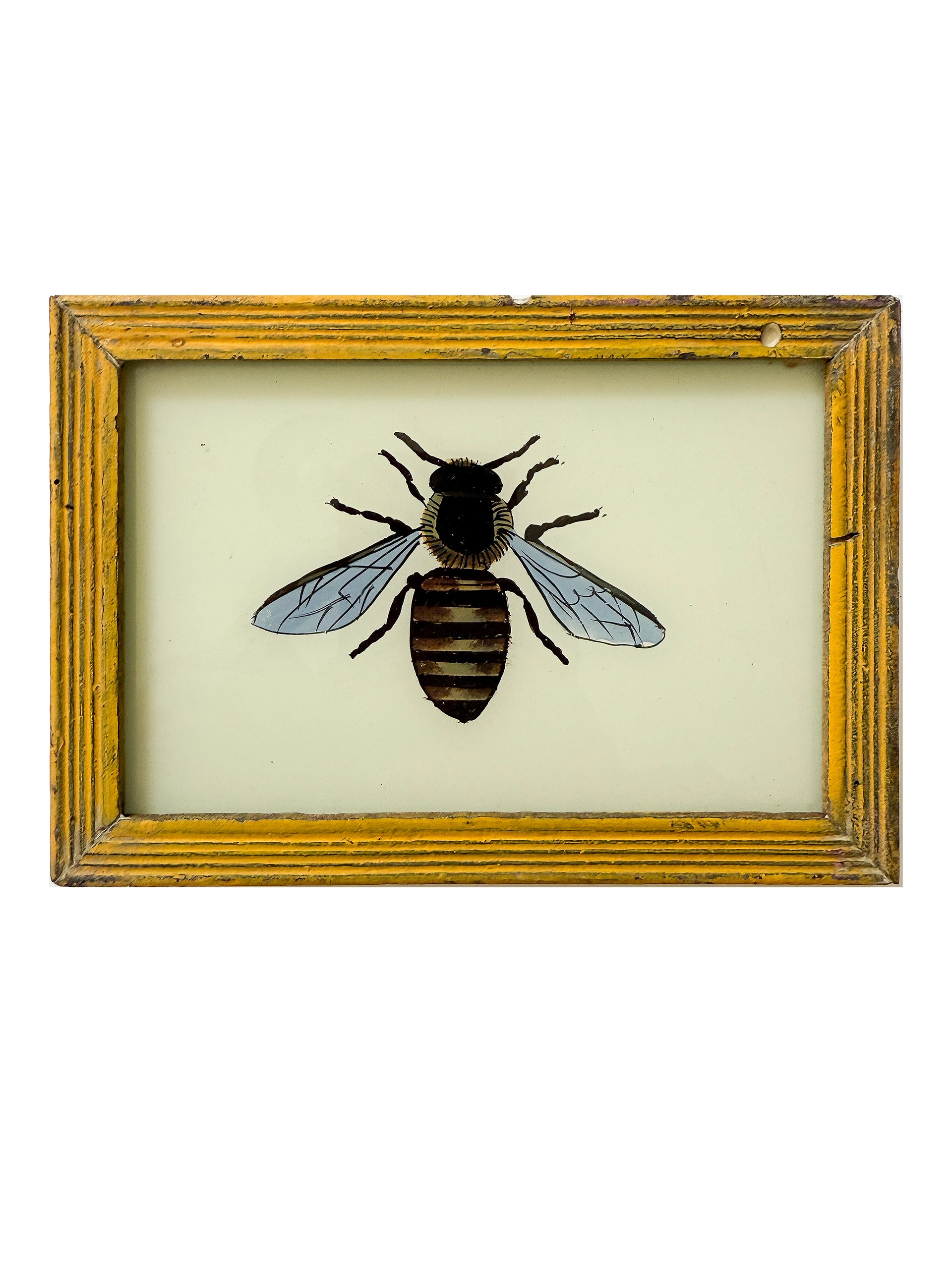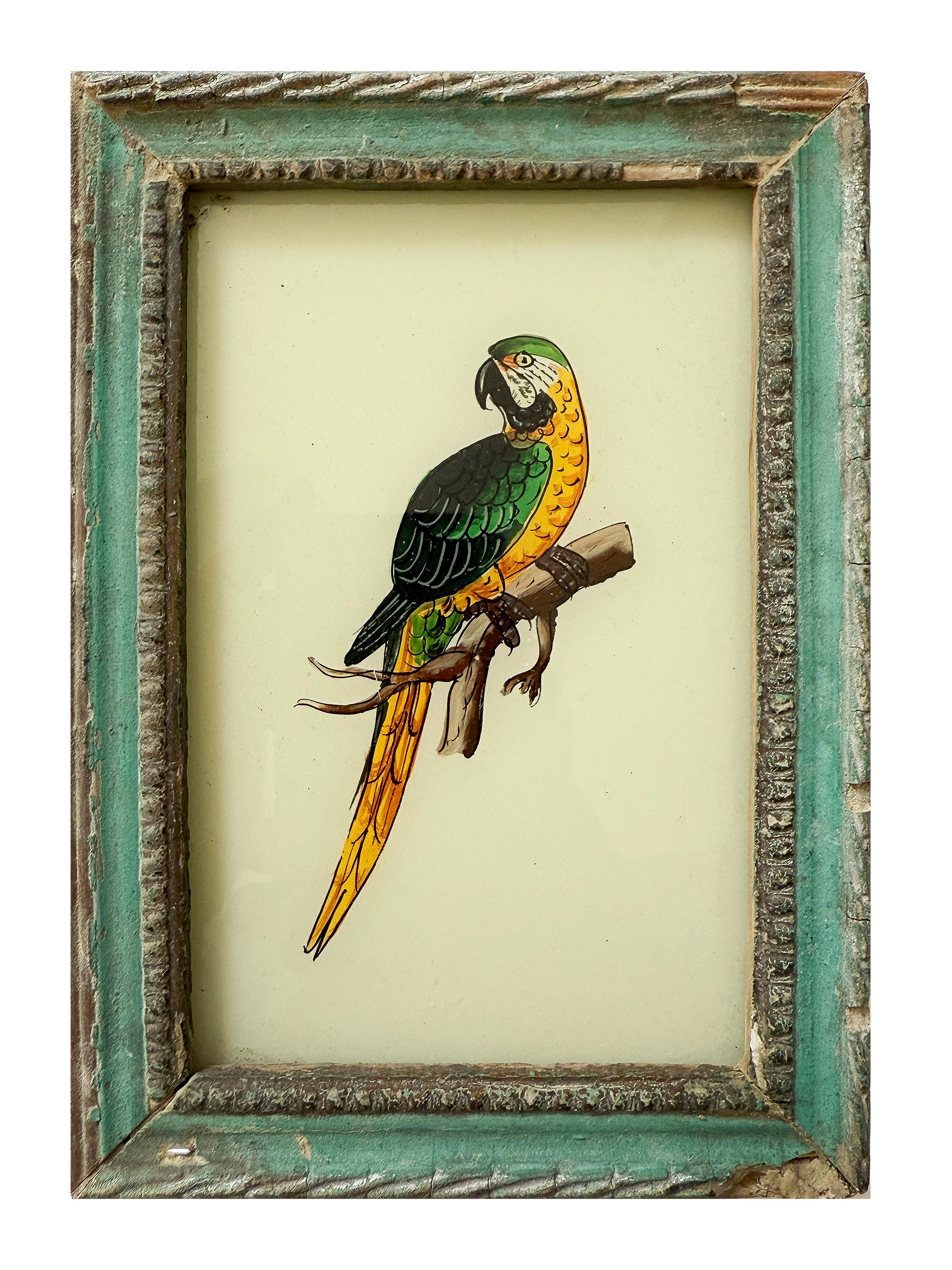 Elephant And Monkey In Yellow Frame - Small Glass Painting