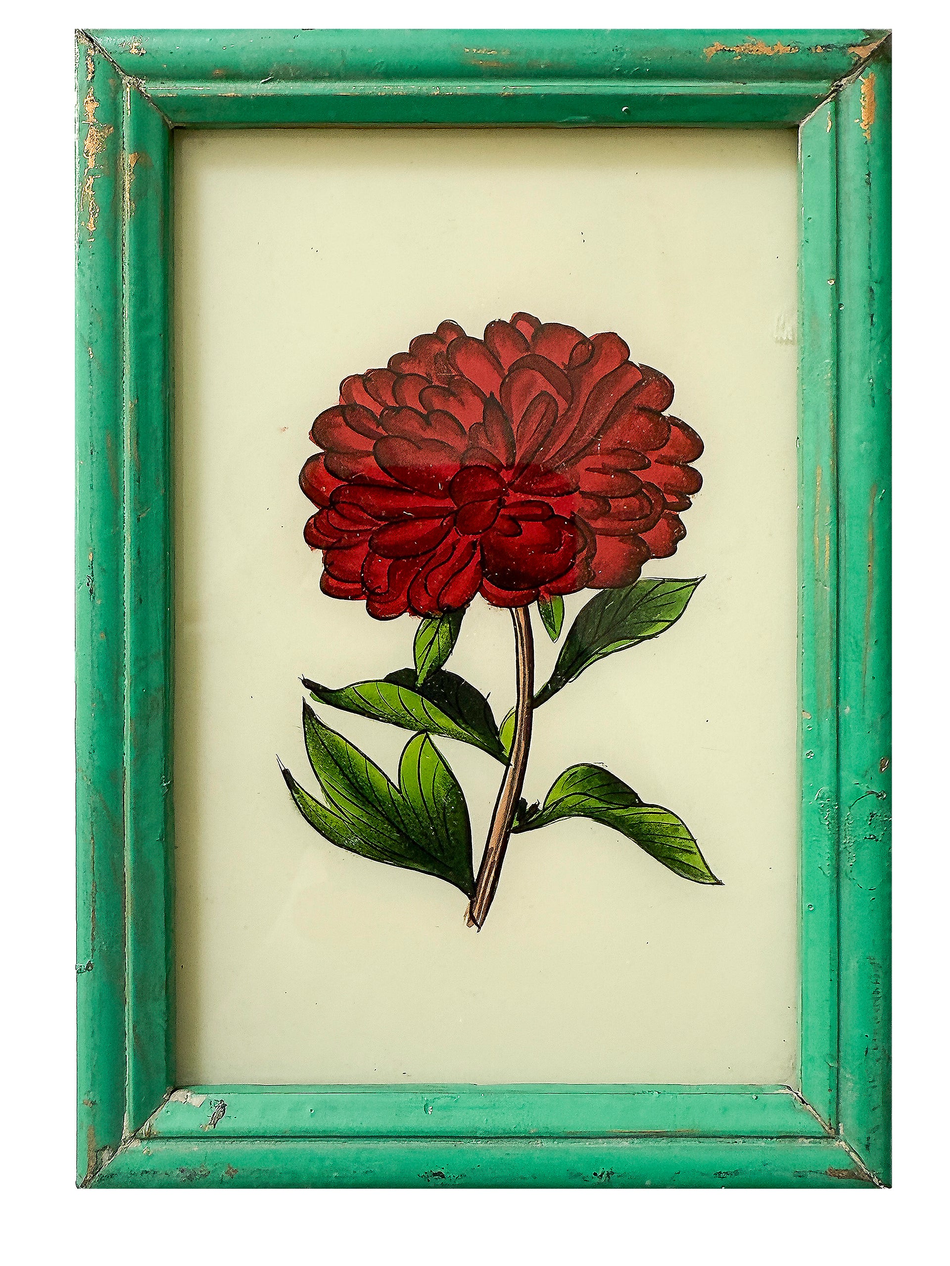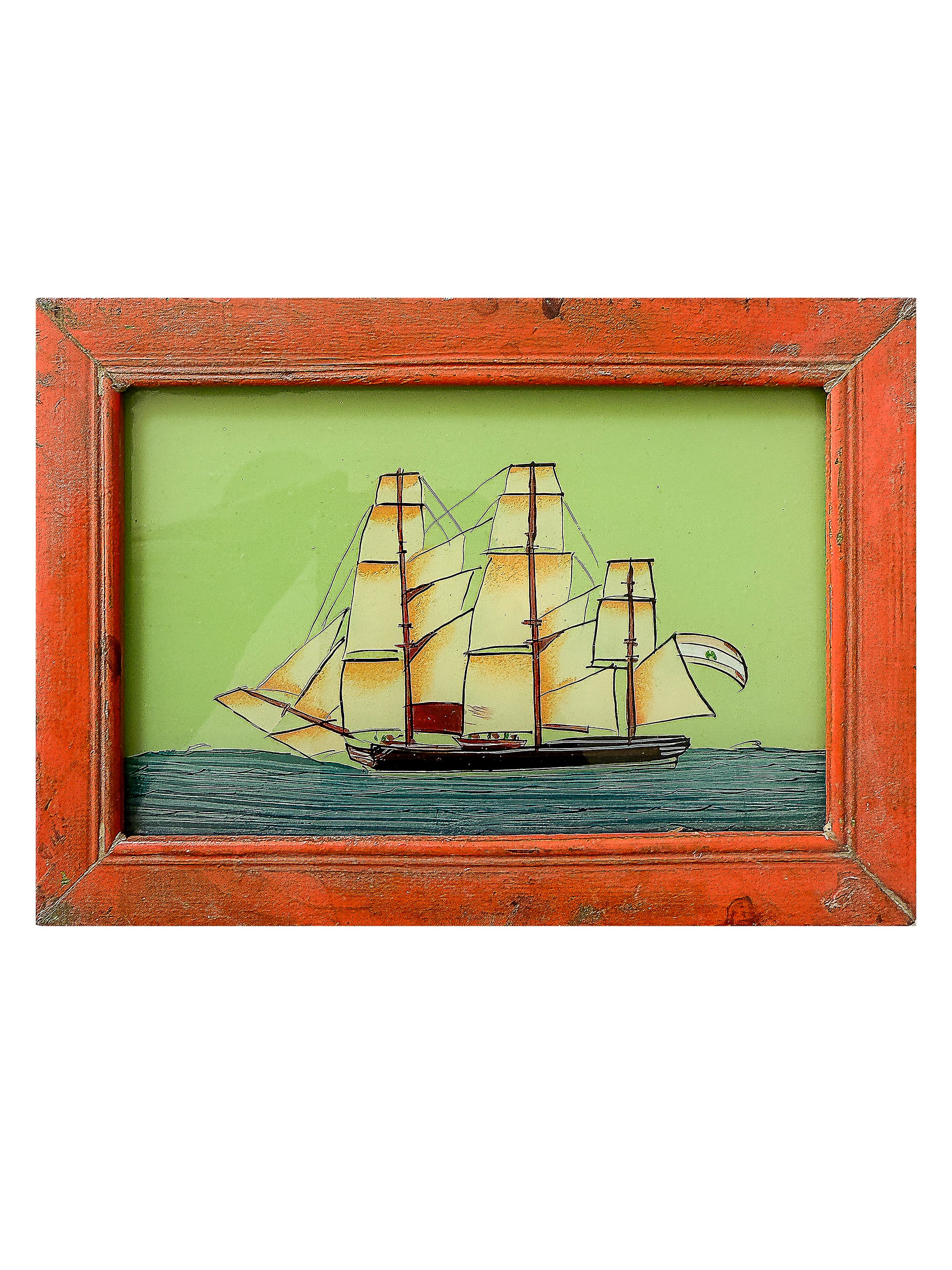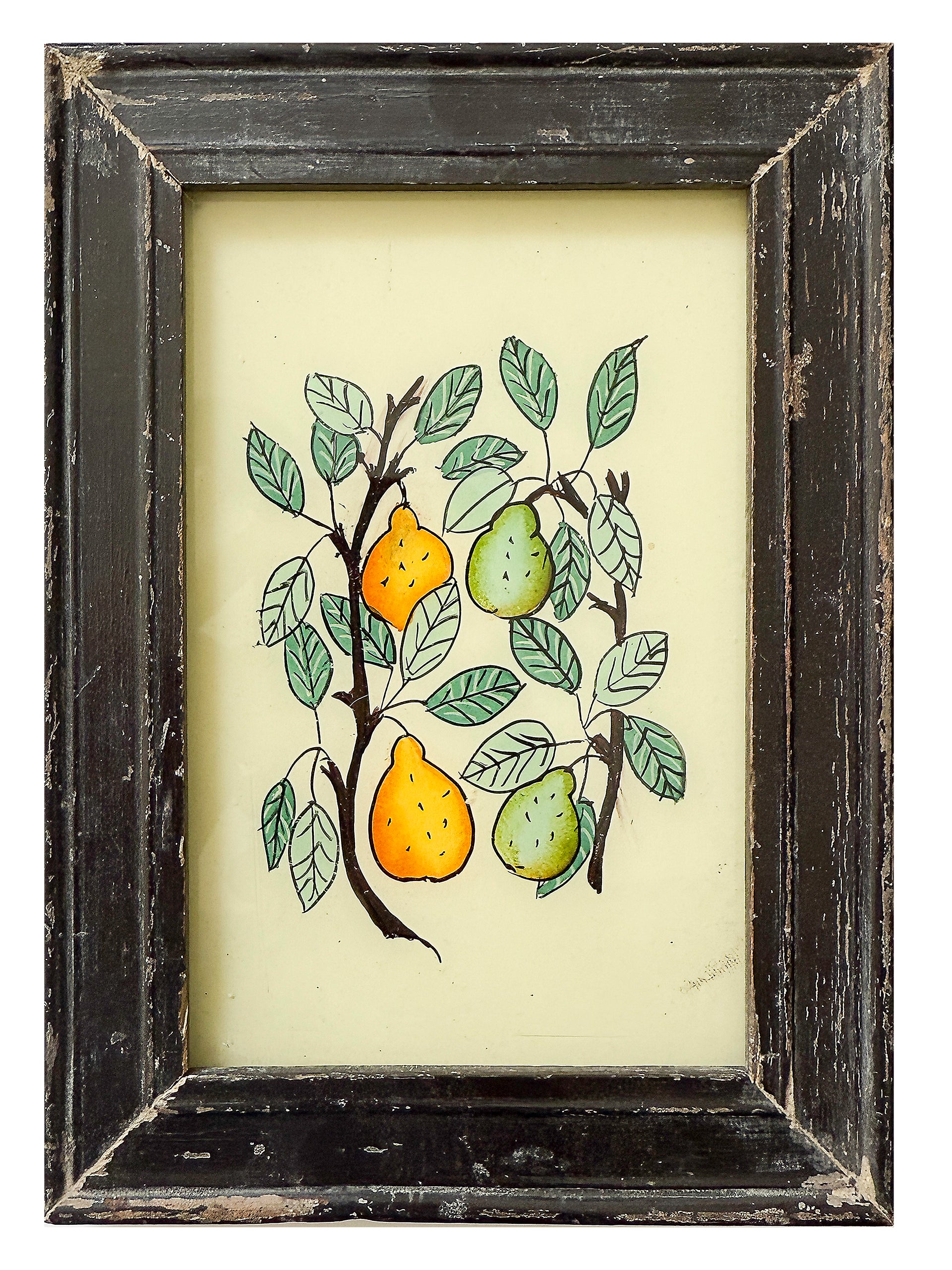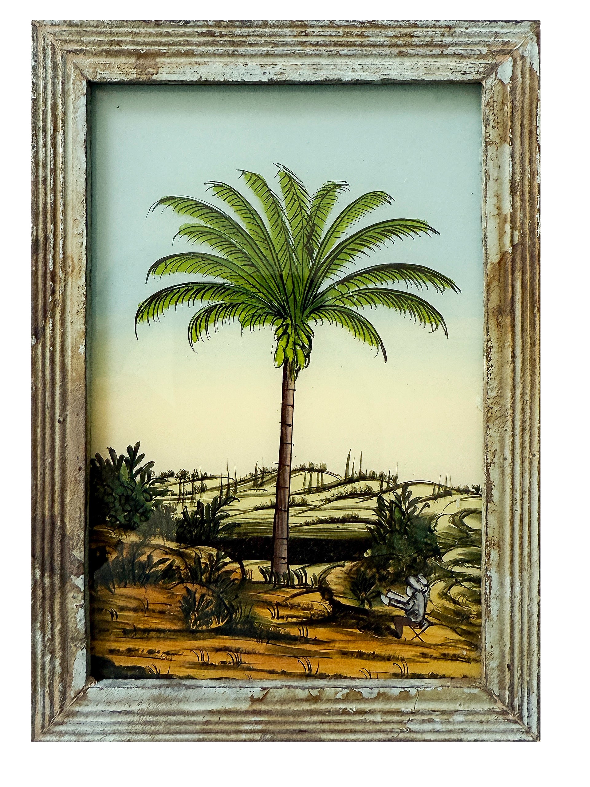 Elephant And Monkey In Yellow Frame - Small Glass Painting