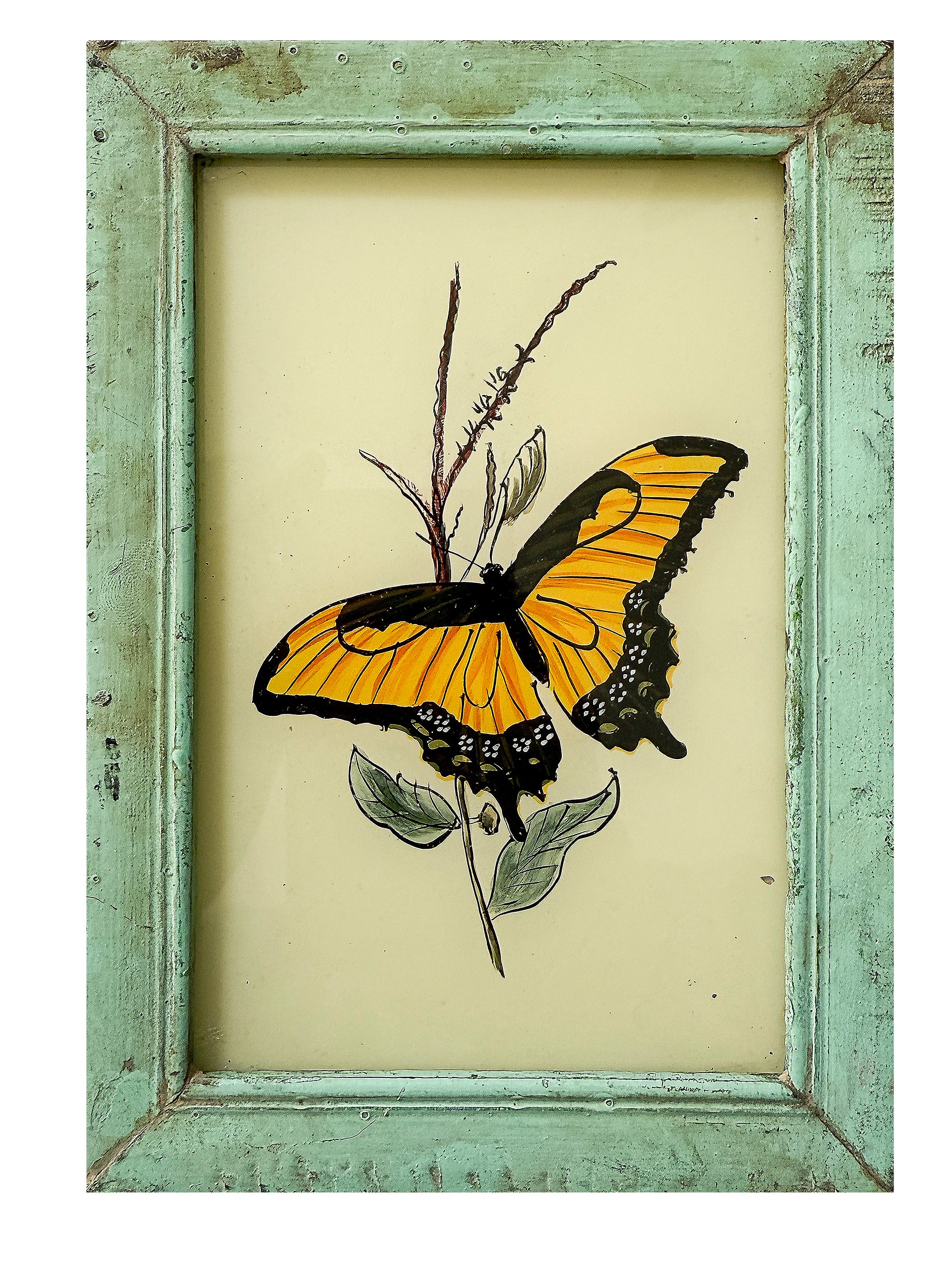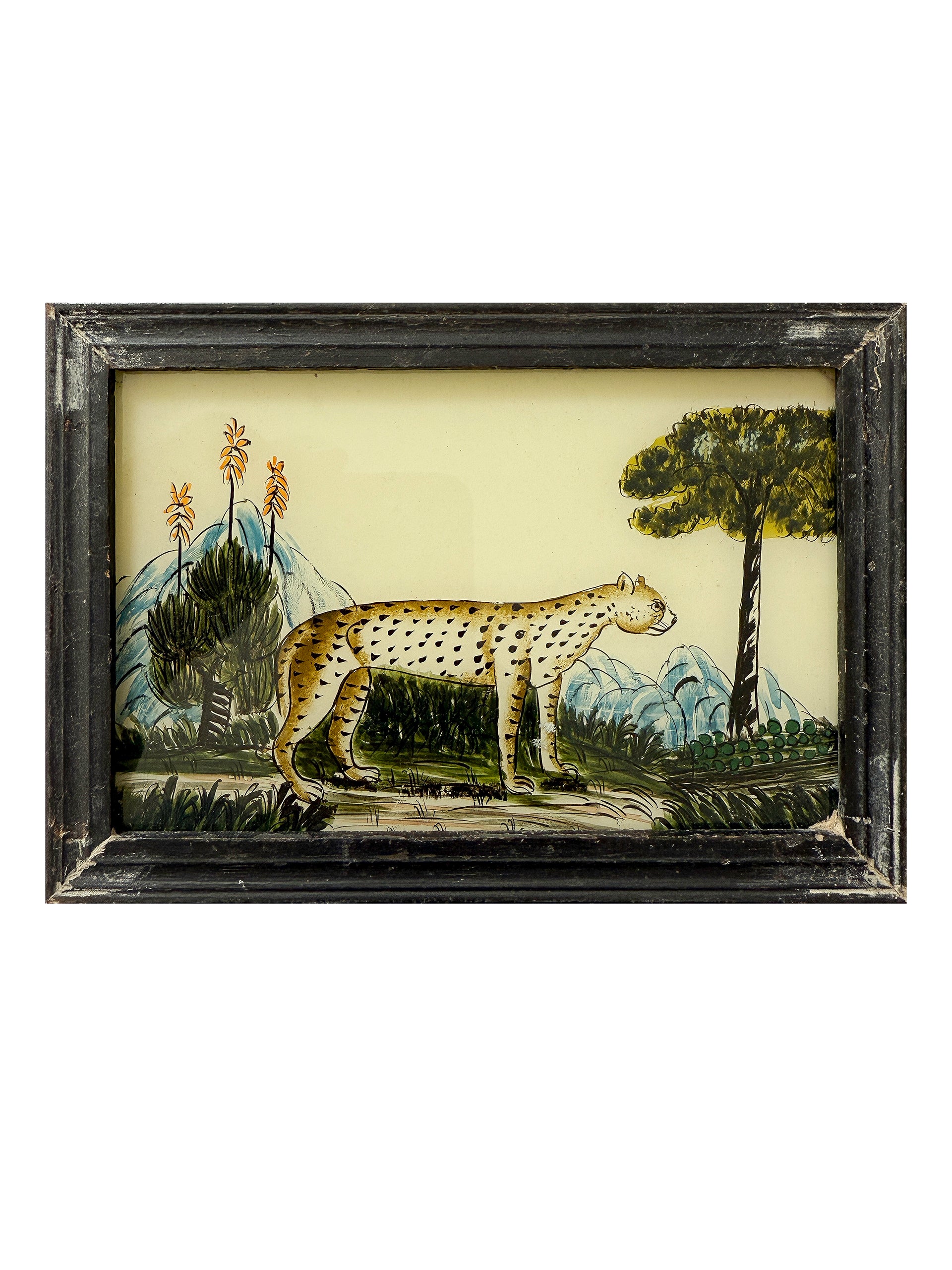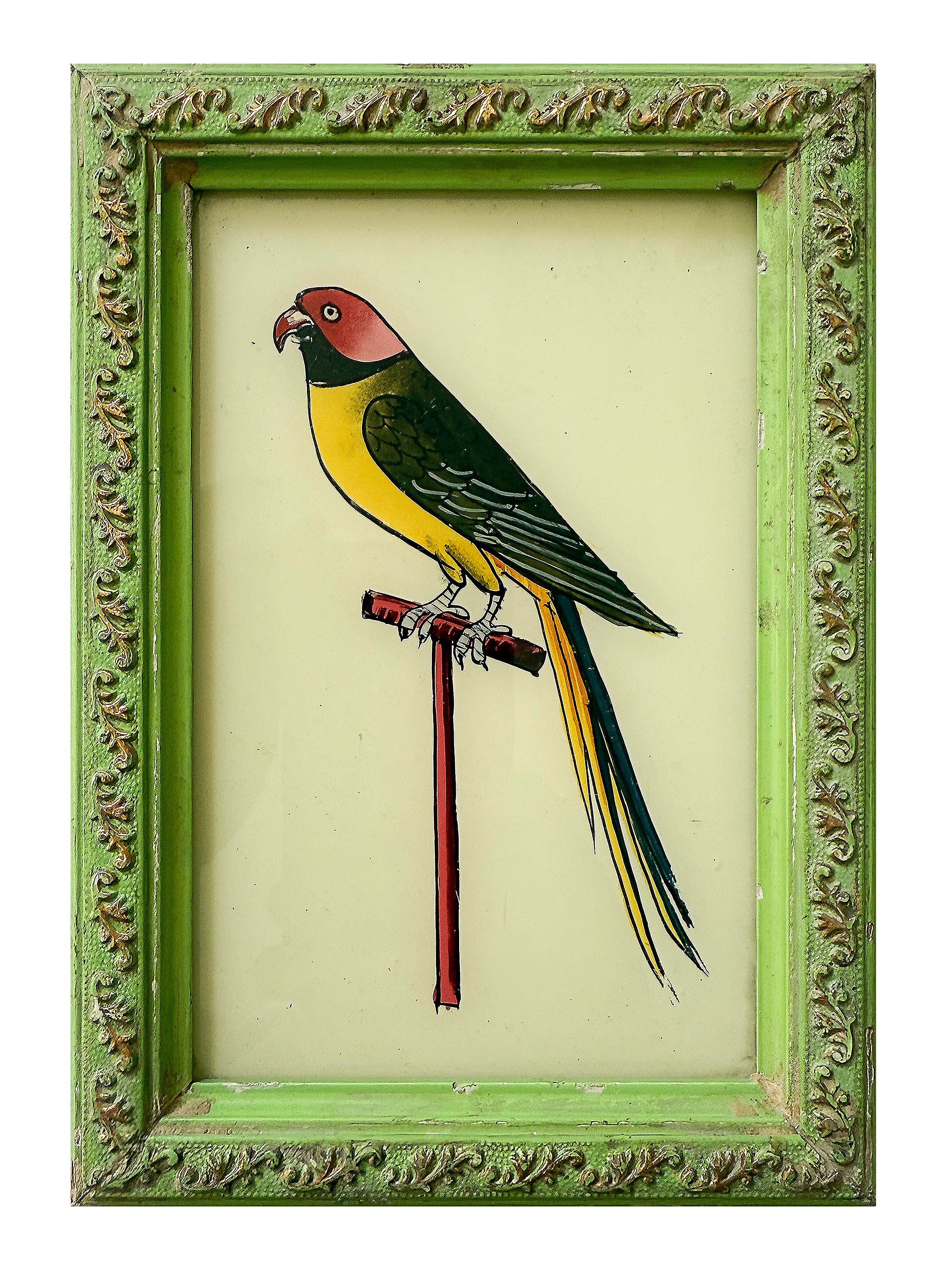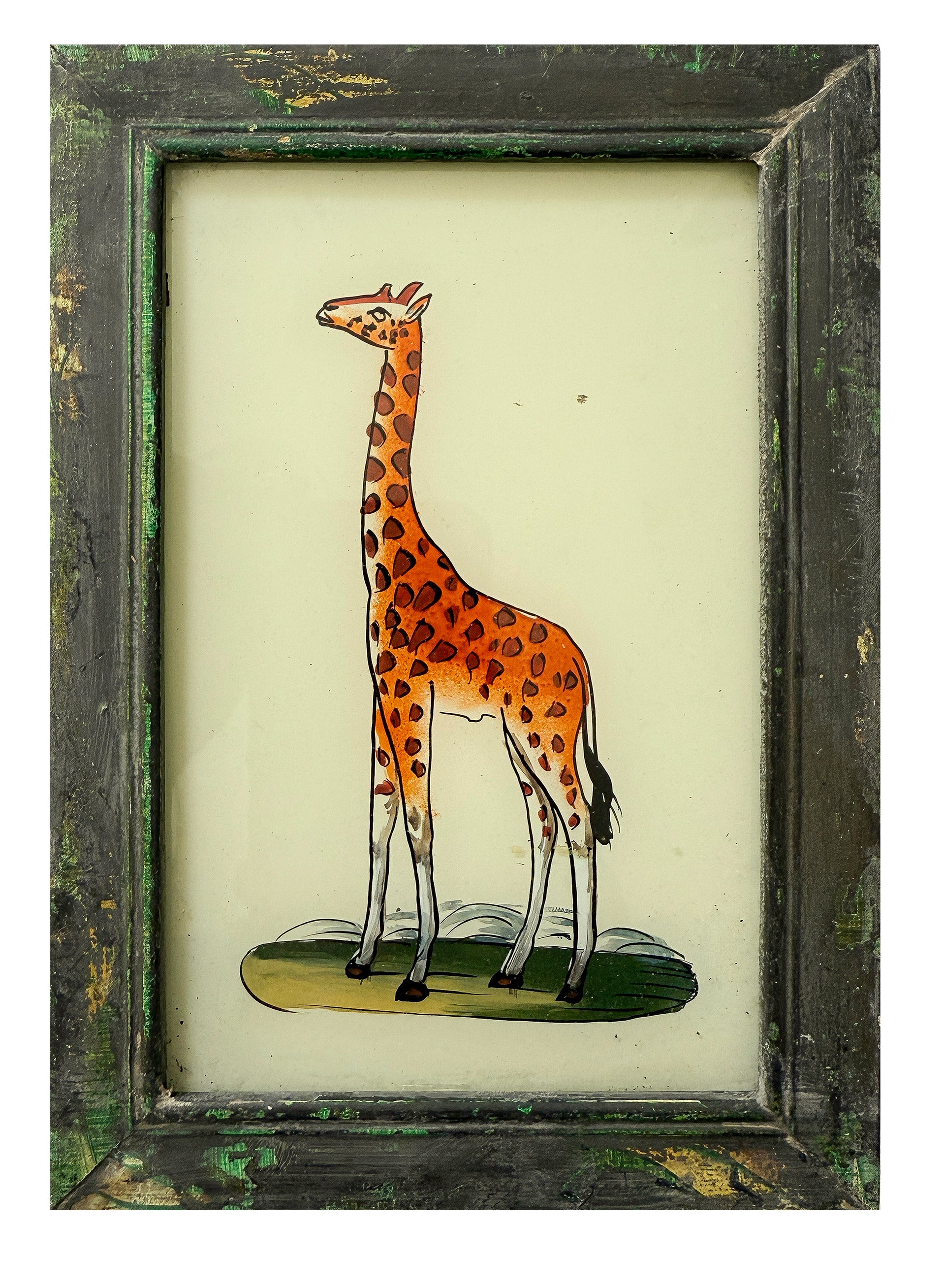 Elephant And Monkey In Yellow Frame - Small Glass Painting