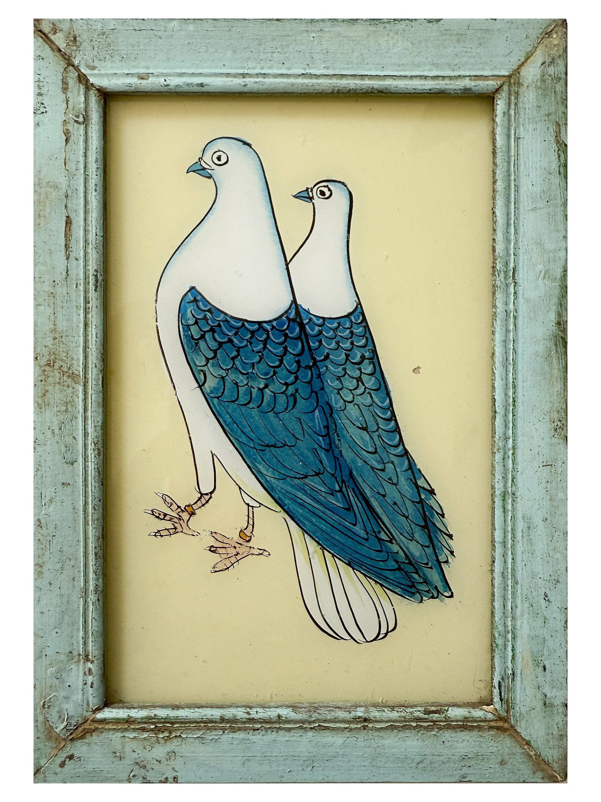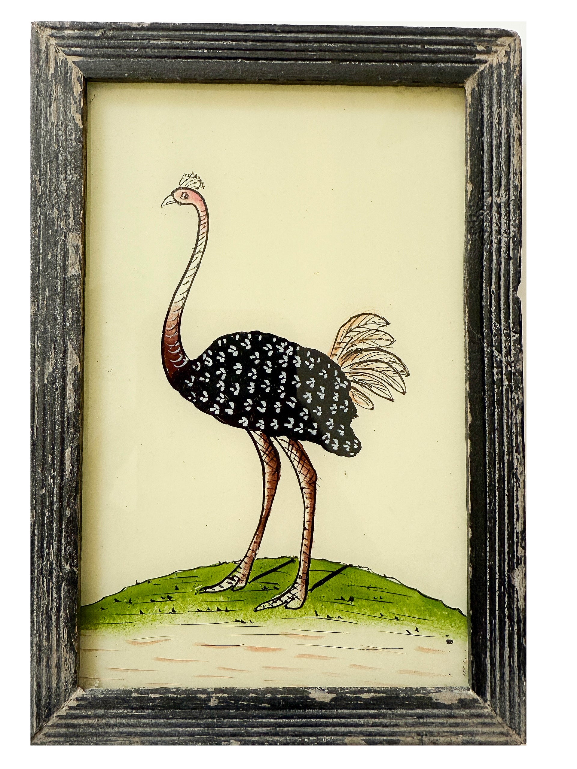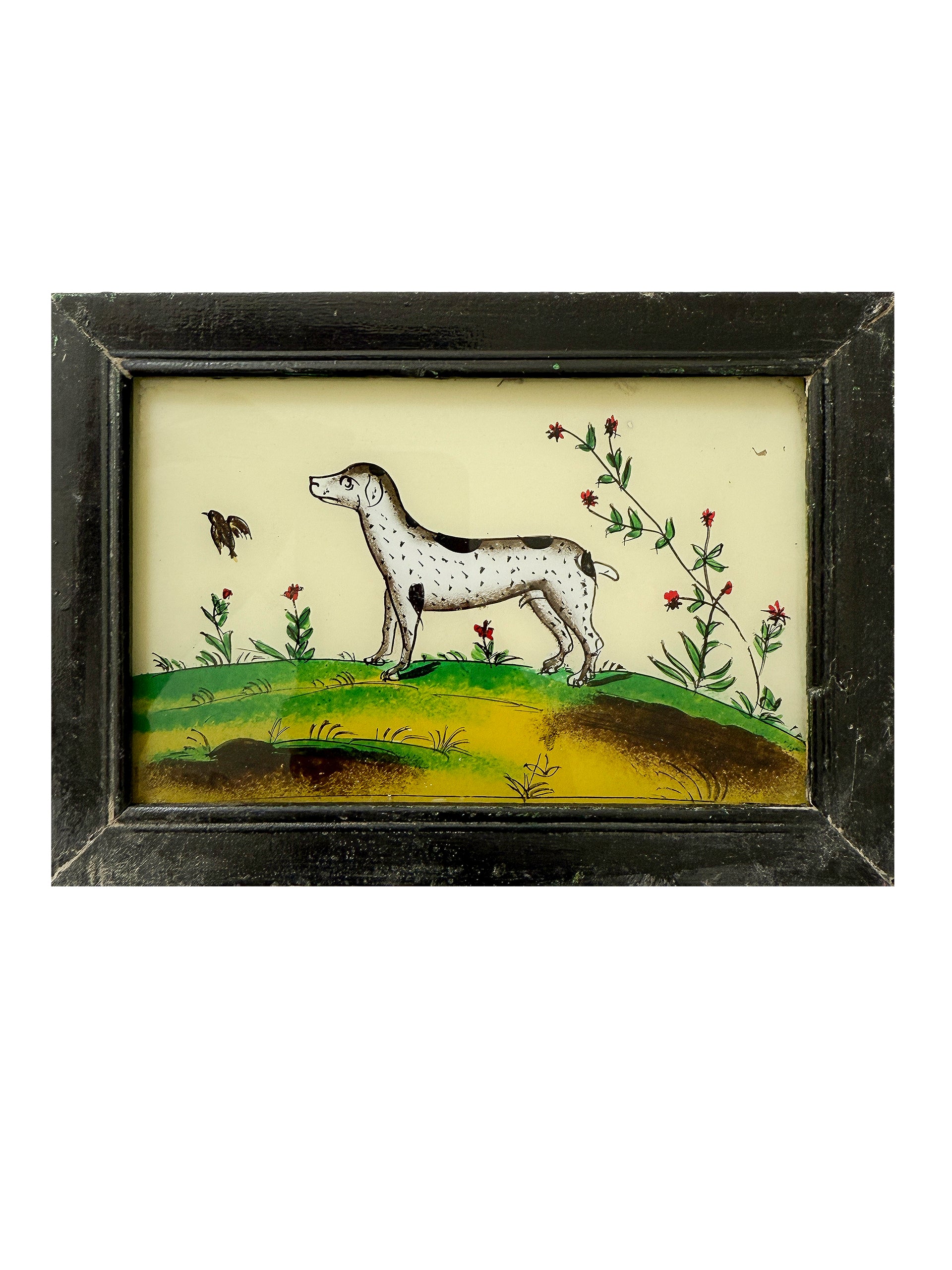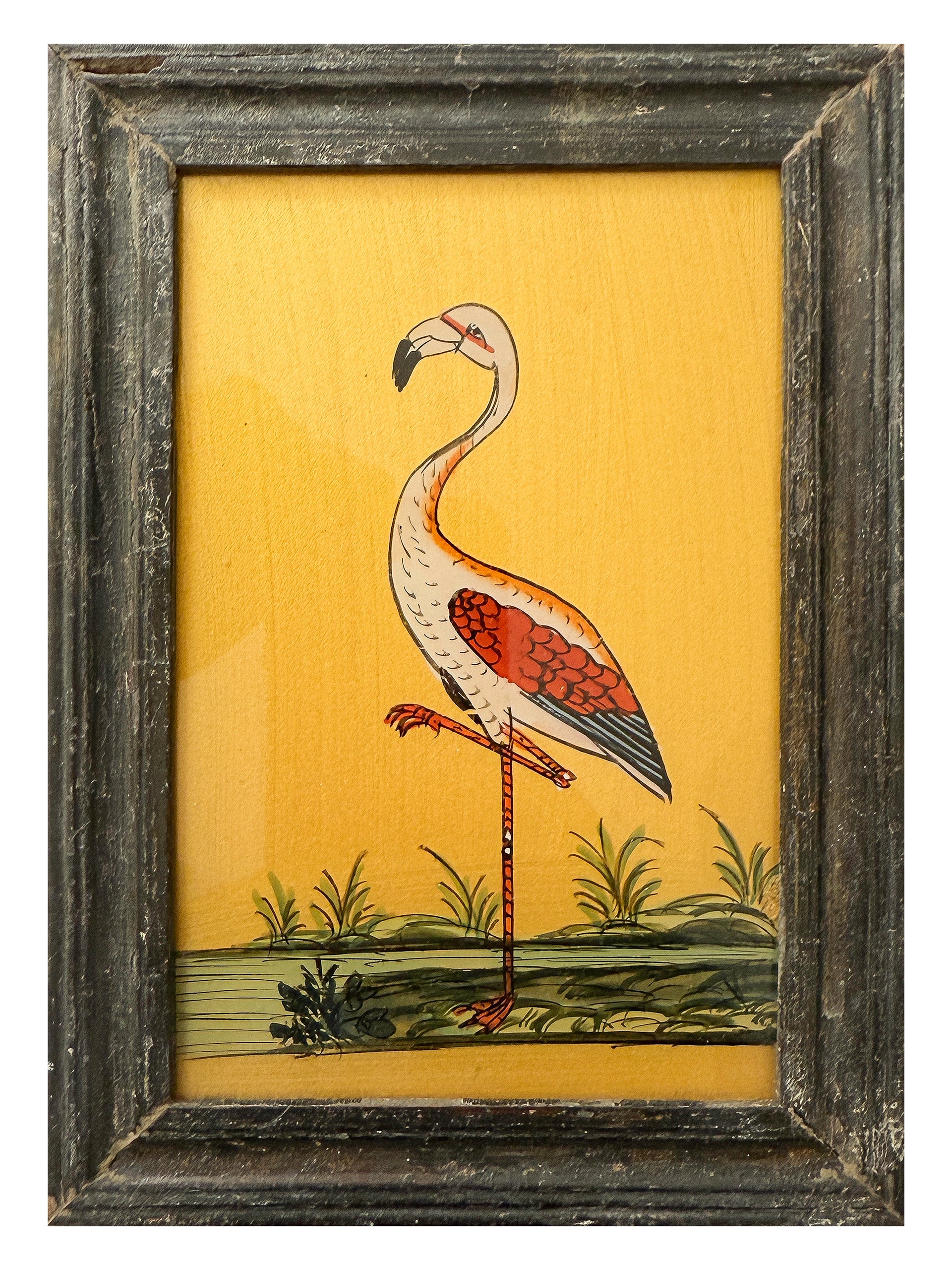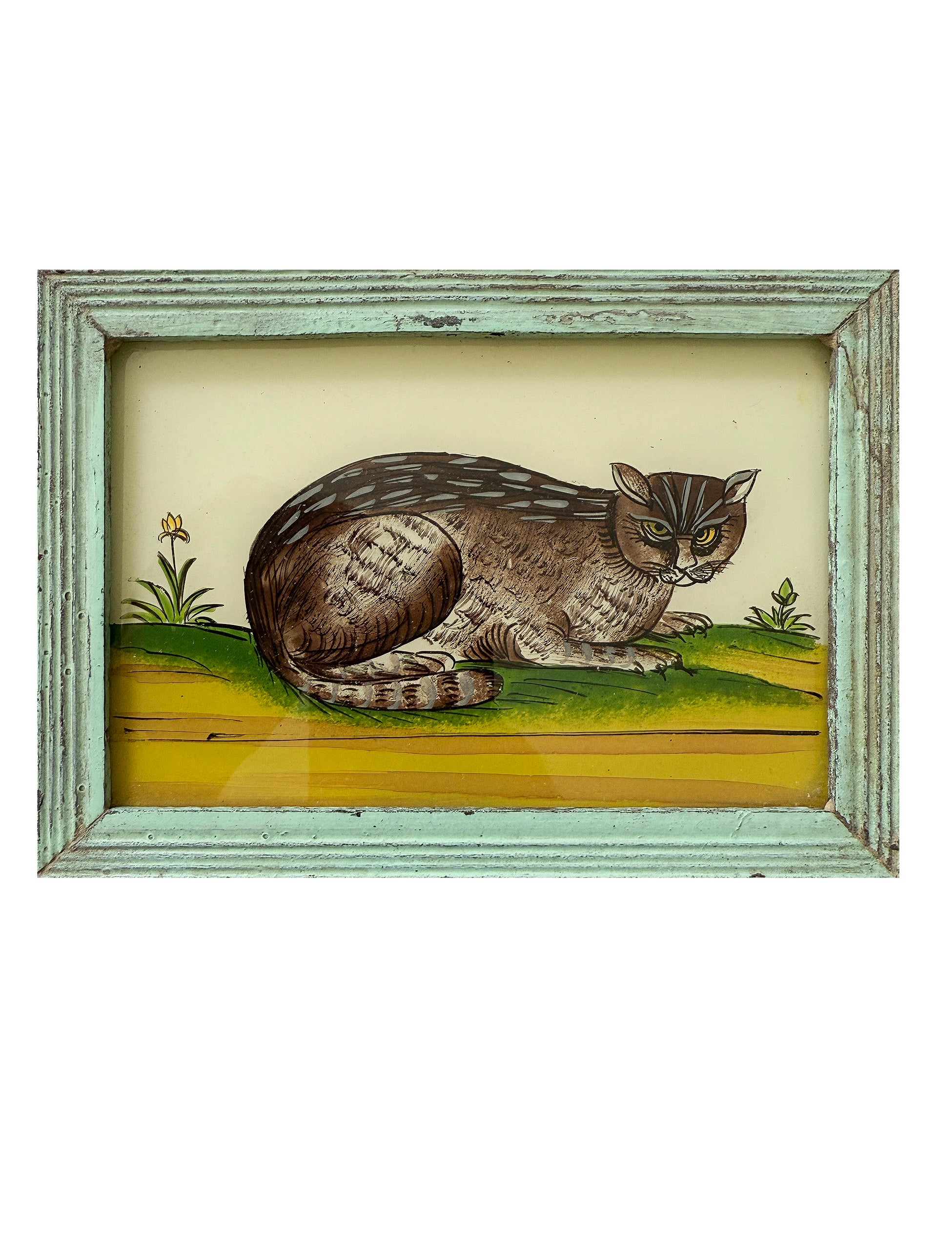 Elephant And Monkey In Yellow Frame - Small Glass Painting
