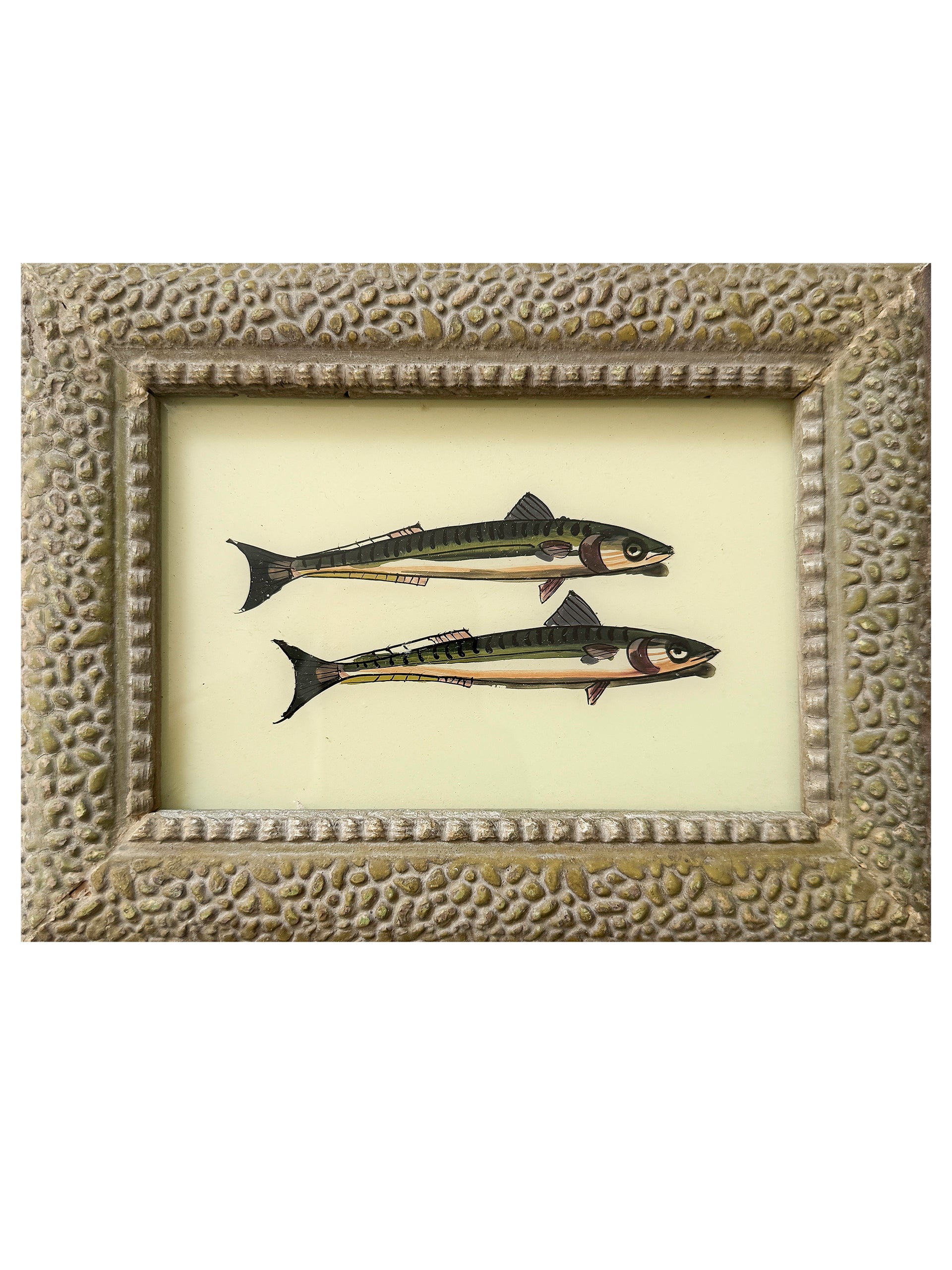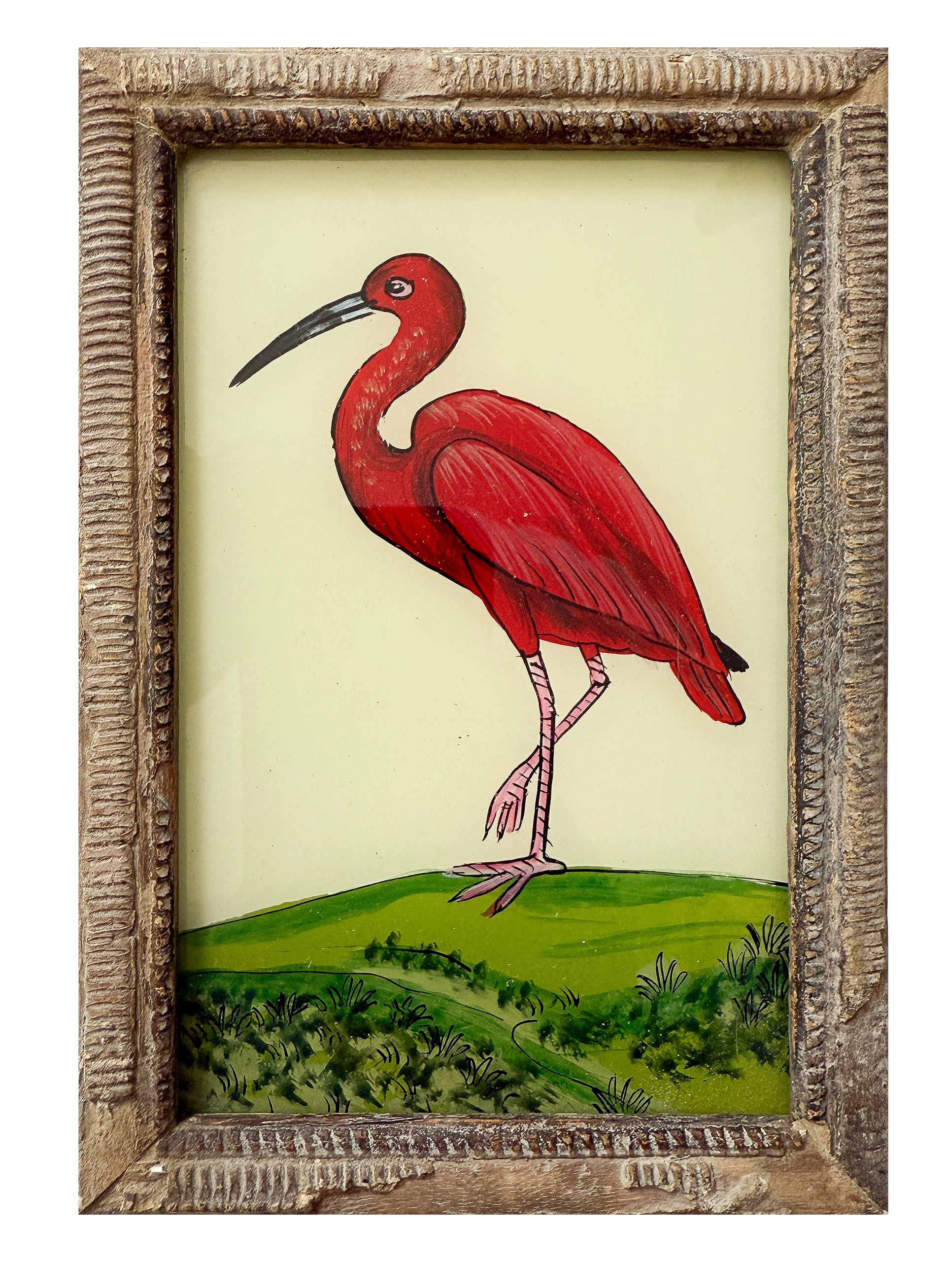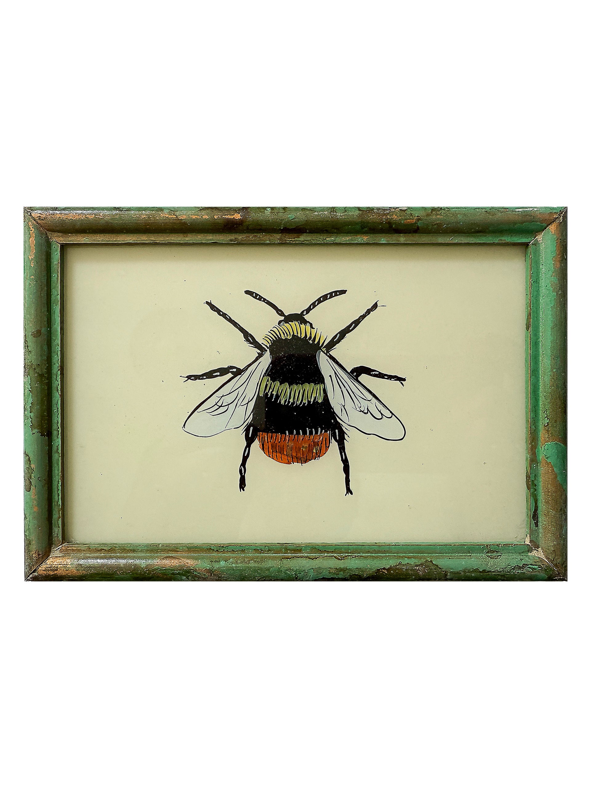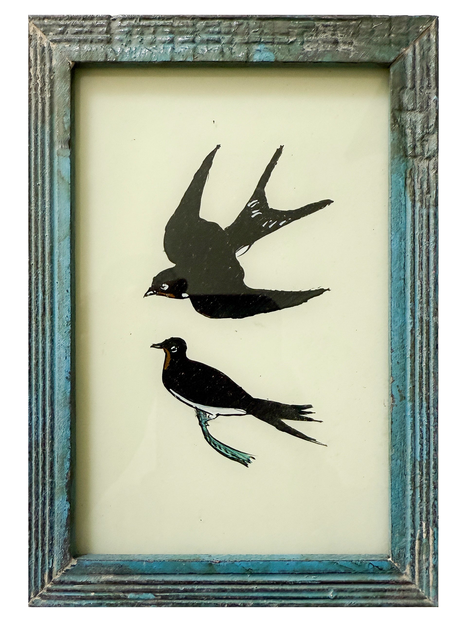 Elephant And Monkey In Yellow Frame - Small Glass Painting