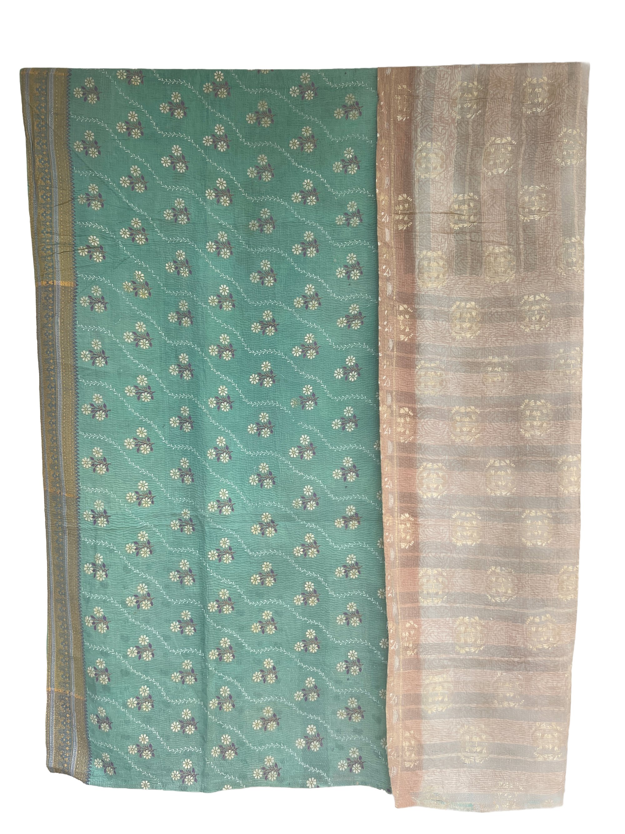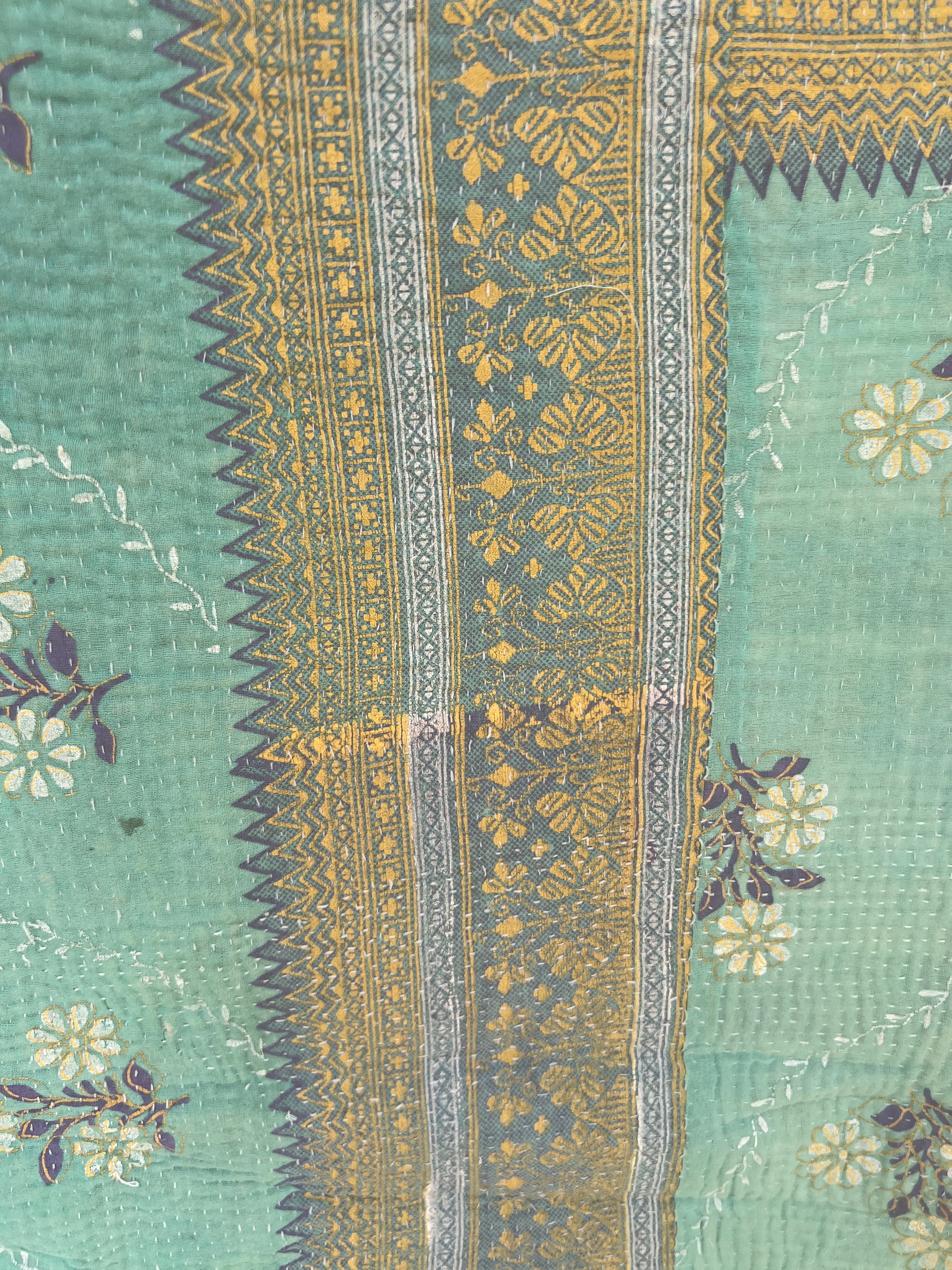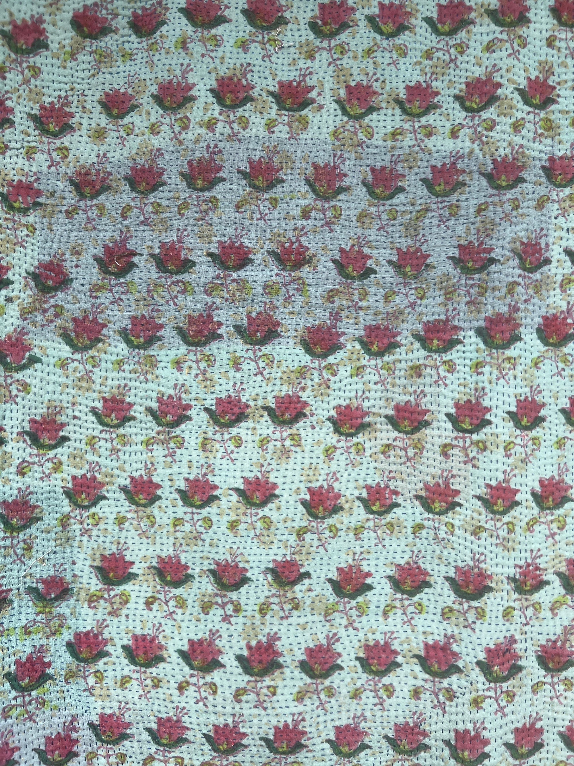 Vintage Kantha Throw with Handblock Print - Floral Print