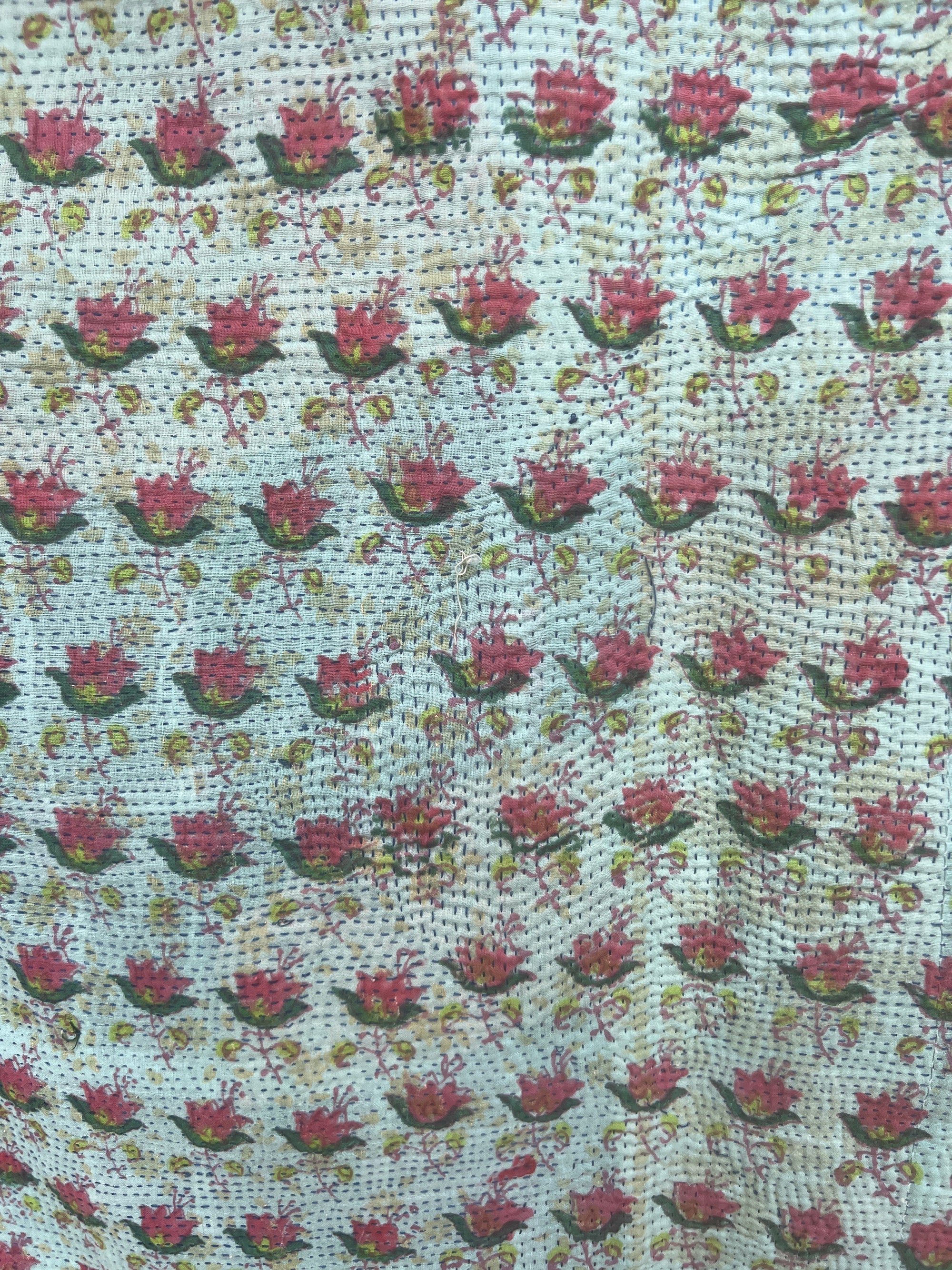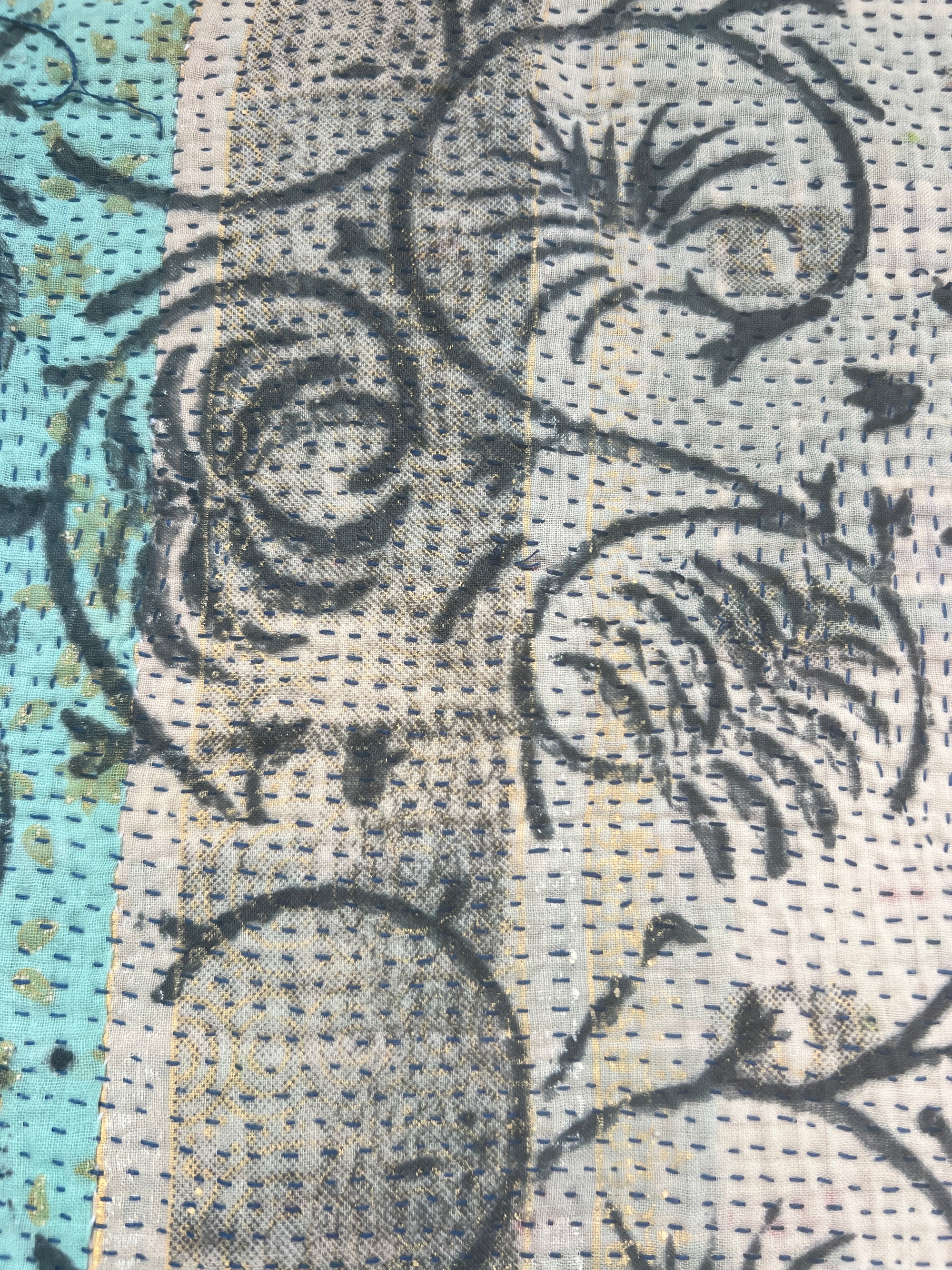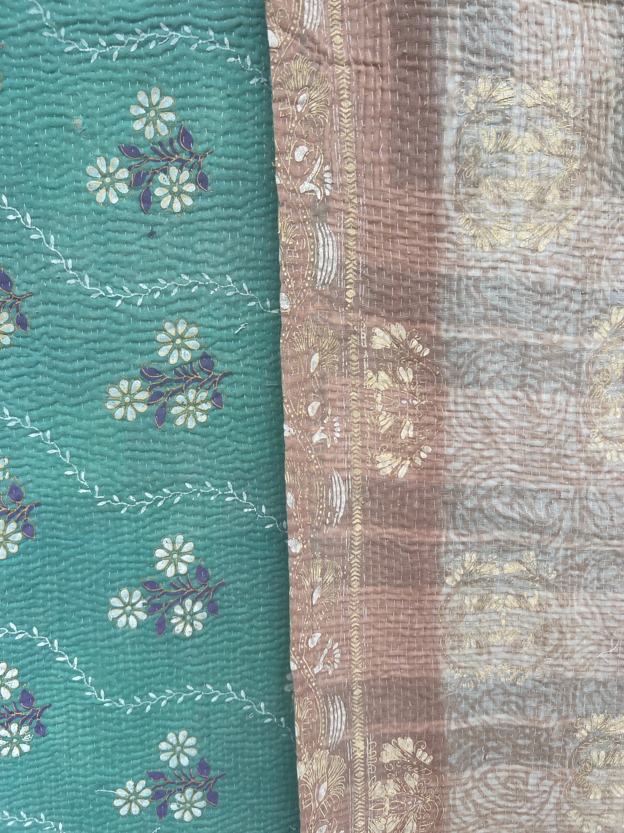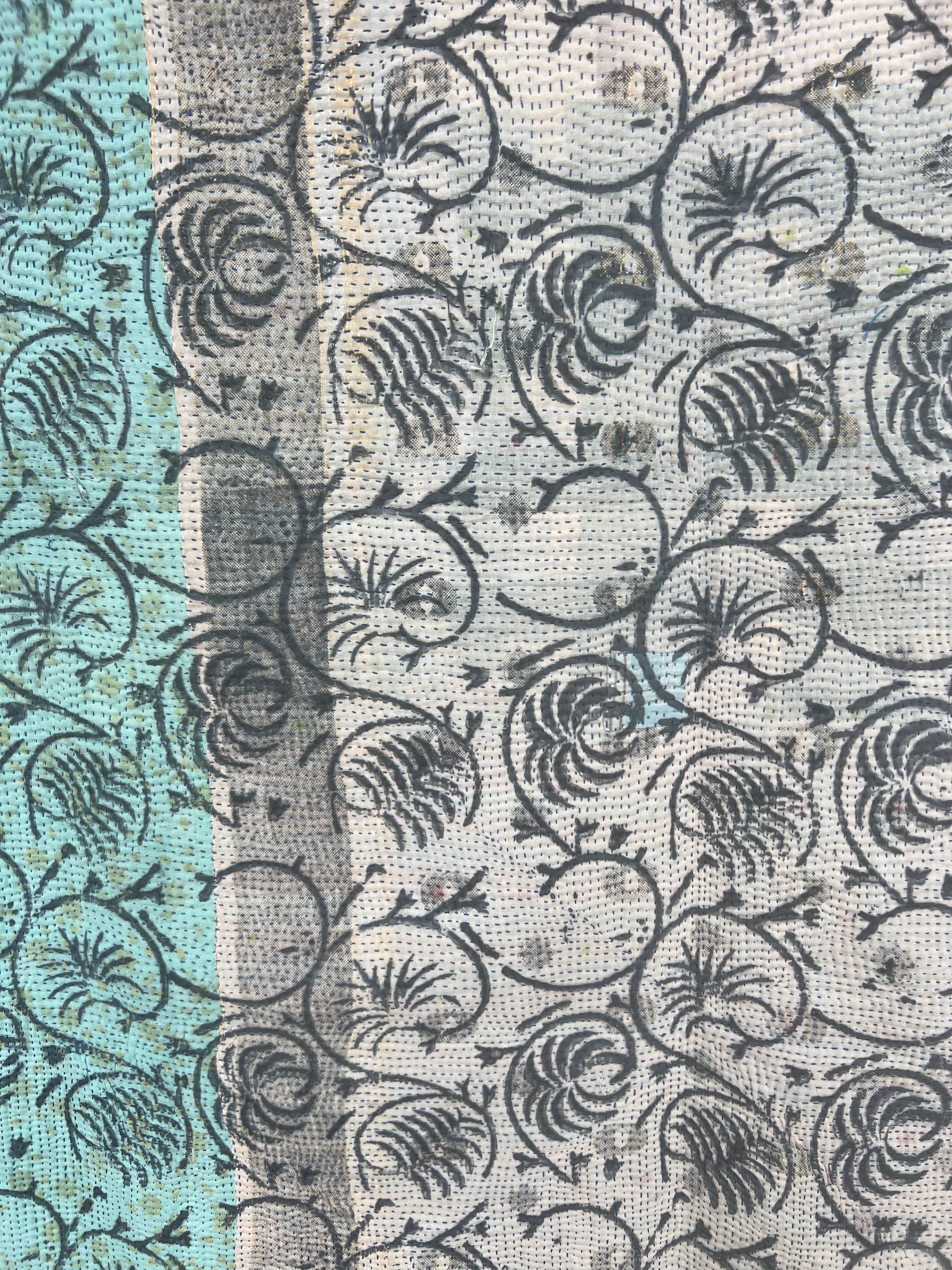 Vintage Kantha Throw with Handblock Print - Floral Print