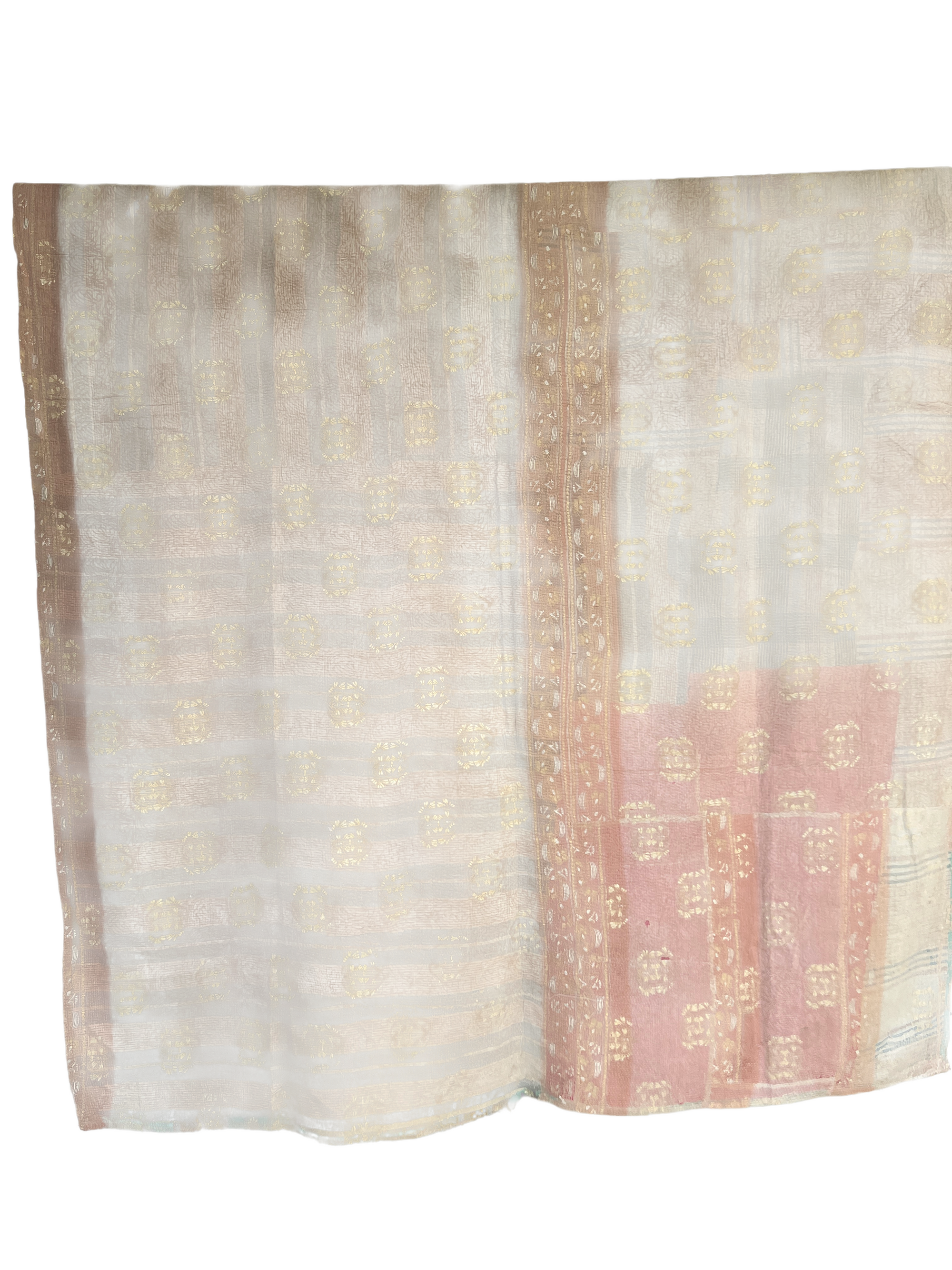 Vintage Handstitched Kantha Throw - Floral Bouquet